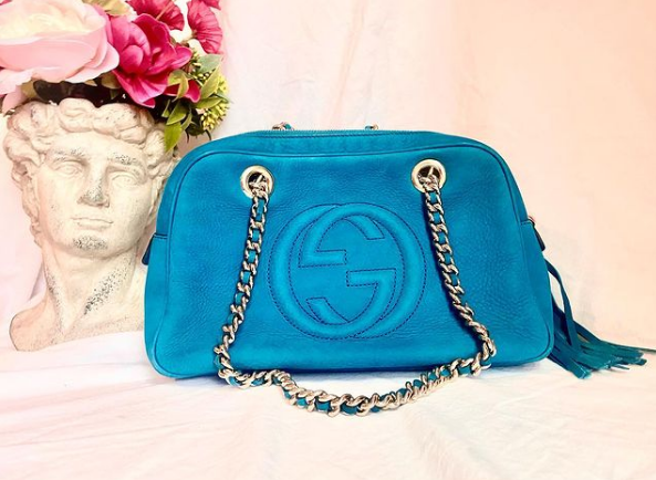 Gucci Soho Blue Tote Bag in EXCELLENT condition! Some wear on the corner, but the inside is completely clean. It can be used as a relatively small hobo/shoulder bag or handbag; strap around 5 inches. Also available on my Ebay site.